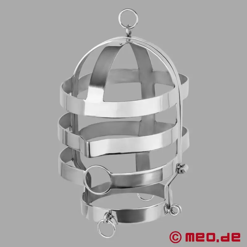 "InfernoCage™" galvos narvas yra puikus pasirinkimas išrankiems BDSM gerbėjams, ieškantiems intensyvios surišimo patirties. Šis viduramžių instrumentų įkvėptas tvirtas plienas arba nerūdijantis plienas galvos narvas siūlo neprilygstamą funkcionalumo ir estetikos derinį. Tvirtos konstrukcijos, aukštos kokybės medžiagų ir įvairiapusės paskirties "InfernoCage™" galvos narvas yra absoliutus bet kurios BDSM kolekcijos akcentas.