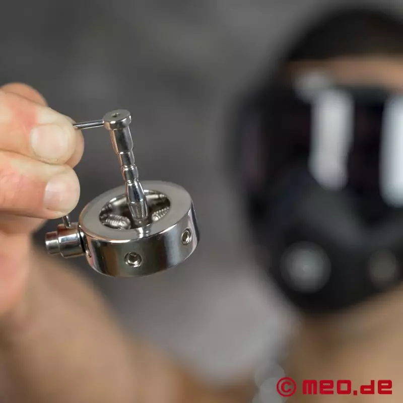 Um alles zu perfektionieren, wird noch der Penis-Plug (mit Öffnung zum Strullern) eingeführt und fest am Ring verschraubt.