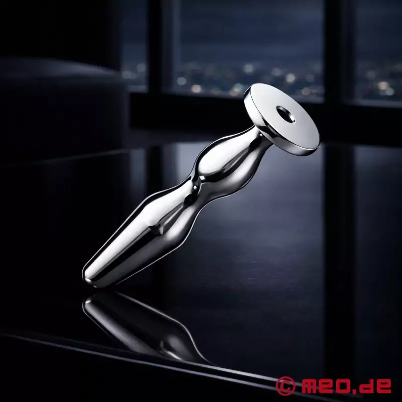 Įkišimas yra įspūdingas: varpos kištuką labai lengva įkišti dėl jo kūgio formos ..... Iš tikrųjų manote, kad viskas padaryta. Tačiau tada prasideda antrasis etapas - beveik neįveikiamo beveik 1 cm skersmens rutuliukas .... Kaip tik tai, kas tinka Cock Stuffing gerbėjams! Įdėjus varpos kištuką, lieka matoma tik nerūdijančio plieno plokštelė su anga.