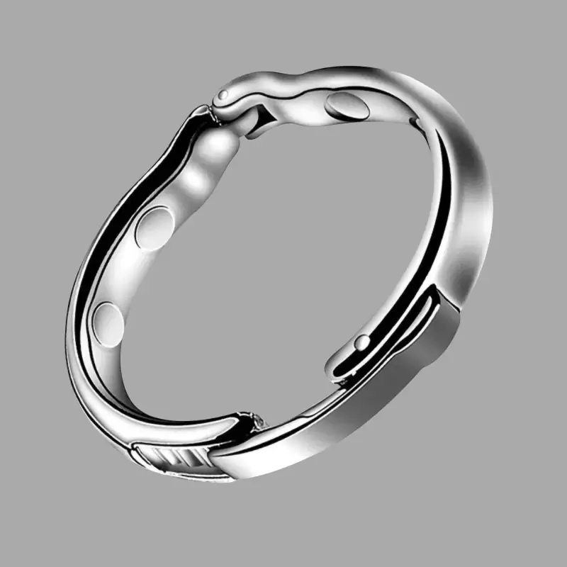 Naujoviškas žiedas varpos galvutei su jungtimi ir užsegimu yra unikalus intymus papuošalas, kuriame dera patogumas ir funkcionalumas. Dėl šarnyro žiedą lengva užsidėti ir nuimti, o tai ypač patogu tokiai jautriai kūno daliai kaip žandikaulis. Išradingas užrakto mechanizmas užtikrina, kad žiedas varpos galvutei priglustų saugiai ir patogiai.