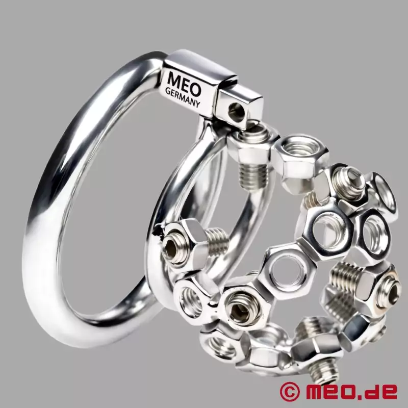 Šis negailestingas nekaltybės narvas privers jūsų Sub verkšlenti vos jį pamačius. Nekaltybės įtaisą labai lengva uždėti: prie Cock Ring pritvirtinamas nedidelis chastity cage, pagamintas iš šešiakampių veržlių. VISKAS PADARYTA! Užrakinkite prietaisą ir išmeskite raktą (arba bent jau paslėpkite jį, kad vergas būtų visiškai jūsų malonėje). Dabar prasideda tikrai įdomioji dalis! Į kiekvieną iš šešiakampių veržlių galima įsukti po dešimt aštrių mažų varžtelių ir jas priveržti arba atlaisvinti, priklausomai nuo to, kaip nepadoriai tuo metu jaučiatės. Palepinkite jo švelnų kūną šiek tiek pasukdami varžtelius arba giliai įsukite spyglius, kad patirtumėte didžiausią malonumą. Jūsų CBT sub daugiau niekada nepamirš, kam priklauso ....