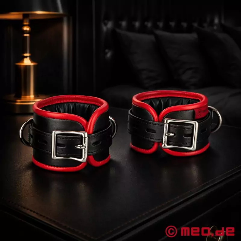 Maksimalus funkcionalumas ir klasikinis dizainas! Rezultatas: puikių spalvų kulkšnių antrankiai, kurie ne tik gerai atrodo ir yra labai patogūs dėvėti, bet ir stebina savo prieinama kaina. Juodos ir raudonos spalvos bondage kulkšnių antrankiai turi 2 žiedus, prie kurių galima pritvirtinti, pavyzdžiui, išskleidžiamąjį strypą.