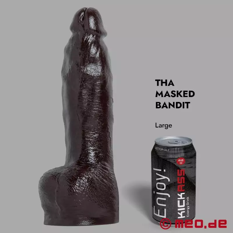 Tha Masked Bandit™ dildo yra tamsiai juodas dildo su ryškiu žandikauliu, išskirtiniu kotu ir forma, kuri akivaizdžiai sukurta analiniam išplėtimui ir intensyviai pilnatvei. Nesvarbu, ar su šiuo dildo norite į namus parsinešti "THAMASKEDBANDIT" našumą, ar išbandyti savo galimybių ribas, kai kalbama apie analinį išplėtimą - jis sukurtas būtent tam.