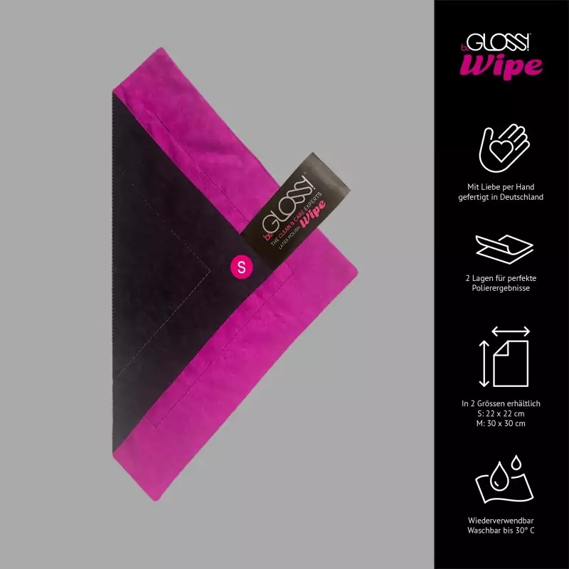 BeGLOSS® Wipe™ yra latekso drabužių poliravimo šluostė, kuri suteikia sausą blizgesį be pūkelių - puikiai tinka kartu su beGLOSS® Perfect Shine™. Ją galima skalbti ir naudoti pakartotinai. Pagaminta Vokietijoje.