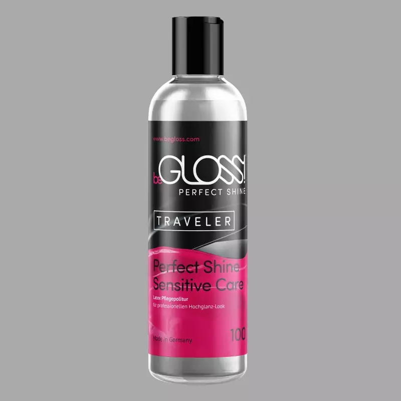beGLOSS® Perfect Shine™ & Sensitive Care™ yra silikono pagrindo priežiūros lakas, kuris po skalbimo uždaro latekso drabužius, apsaugo juos nuo dėvėjimosi ir kenksmingo poveikio. Sandarinimas suteikia latexui ypatingą blizgesį ir elastingumą, kad jis atrodytų seksualus ir blizgus. Pagaminta Vokietijoje.