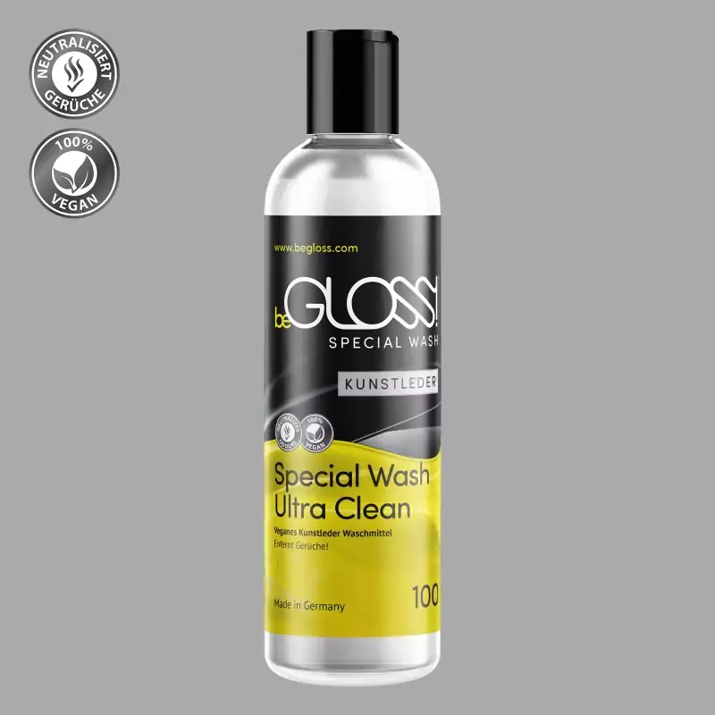 beGLOSS® Special Wash™ yra veganiška valymo priemonė, skirta gaminiams iš dirbtinės odos. Ji švelniai, greitai ir veiksmingai pašalina nešvarumus ir nemalonius kvapus, padeda prižiūrėti iš dirbtinės odos pagamintus drabužius ir BDSM aksesuarus, padeda išlaikyti medžiagos lankstumą ir gali apsaugoti medžiagą nuo įtrūkimų. Pagaminta Vokietijoje.