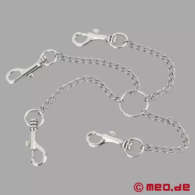 Ši nerūdijančiojo plieno jungtis leidžia greitai ir lengvai sukurti sudėtingus Hogtie įtaisus surišimo metu. Tvirtos šios jungties grandinės yra tokios tvirtos, kad lengvai atlaiko net stipresnius galingų vergų traukimus. 4 užkabinamus kabliukus galima pritvirtinti prie antrankių ir kulkšnies antrankių ir gerokai apriboti partnerio judėjimo laisvę, kad jis būtų visiškai priklausomas nuo jų malonės.