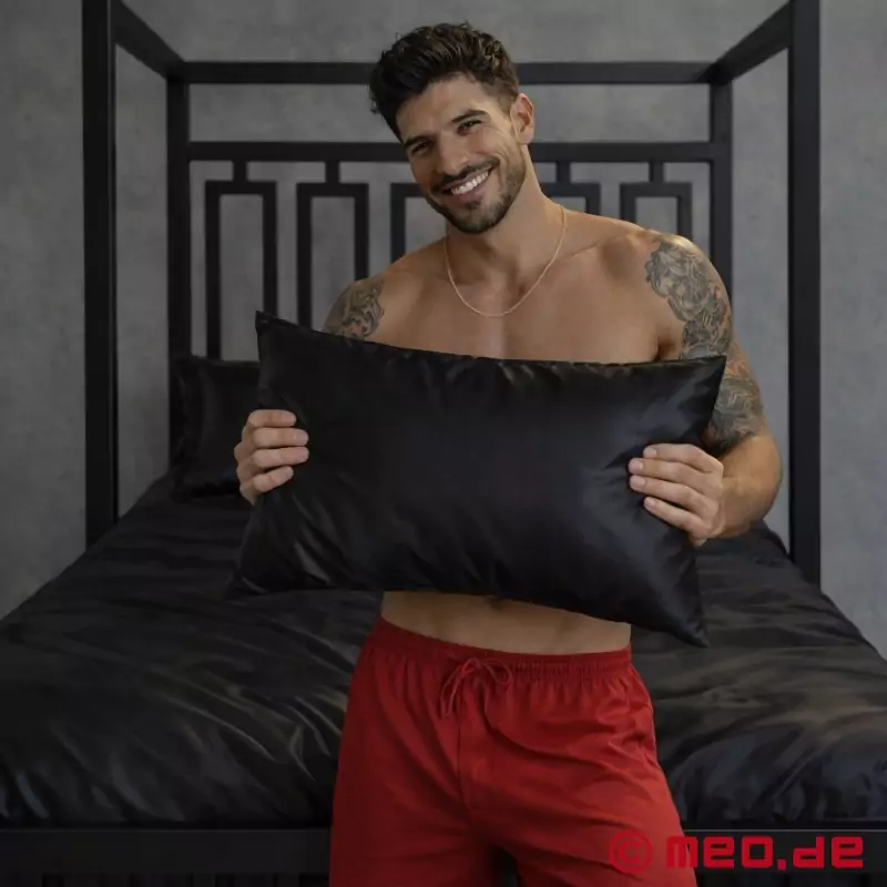 Allgemeines: Das feuchtigkeitsabweisende Spannbettlaken im Latex-Look von SOSF (im Folgenden immer so genannt) ist in mehreren Größen entschieden. EU Double, EU King, Super King, UK Double, UK, King. Der Unterschied zu UK und EU sind 10 cm in der Höhe des Lakens. Die Oberfläche des schwarzen Lakens von SOSF wirkt etwas Gummiartig und kühl an und besteht aus Polyester und Polyurethan. Trotzdem fühlt es sich sehr angenehm auf der Haut an. Das Laken passt so, wie es sollte in der entsprechenden Größe auf die entsprechende Matratze und Kissen. Da ich ein 2 M x 2 M Bett habe, konnten wir es nur bei meinem Partner ausprobieren, aber das macht ja nichts. Es gibt das SOSF Laken auch in Weiß, aber ich finde, das nimmt irgendwie den Charme, wenn man das Gefühl hat, alle Flecken trotzdem deutlich sehen zu können. Da schluckt schwarz das eher. Ihr habt natürlich auch die Möglichkeit, das Laken einfach über euer aktuelles zu ziehen. Dann müsst ihr die Laken nicht immer wieder schnell wechseln und könnt einfach loslegen und habt danach nicht allzu viel Arbeit damit. Den Kissenbezug könnt ihr ebenfalls in vier verschiedenen Größen erhalten. Von 700×450 bis 800×800. Ich fand es perfekt, gleich das passende Kissen bzw. den Bezug dafür zu haben. Dann hat alles einen Einheitlichen Look und überall kann man so viel herum sauen, wie man möchte