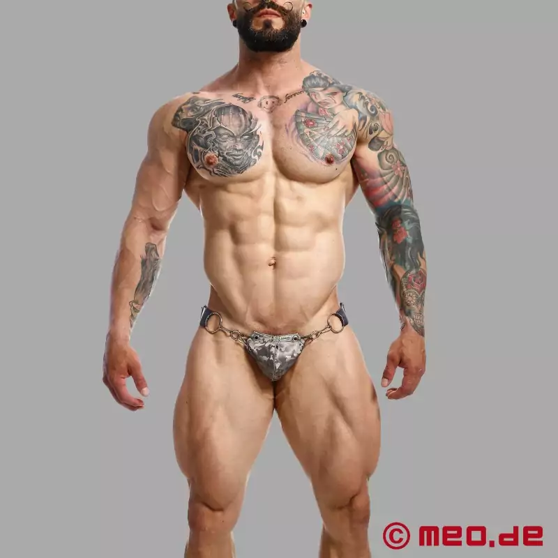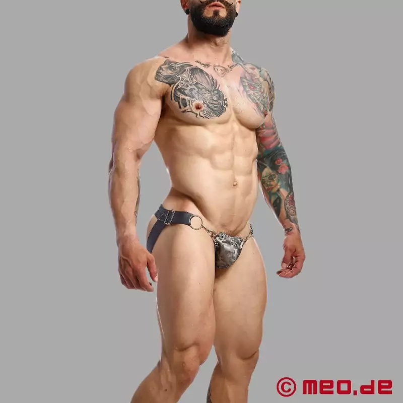 Ar esate pasiruošusi aprangai, kuri įspūdingai ir seksualiai demonstruotų jūsų kūną? "MEO®" suspensorijuje avangardinis dizainas dera su tyru jausmingumu. Pagamintas iš prabangios sintetinės odos, jis sukuria išvaizdą, kuri ne tik išsiskiria, bet ir yra įsimintina: dominuojanti, stilinga ir bekompromisiškai vyriška.