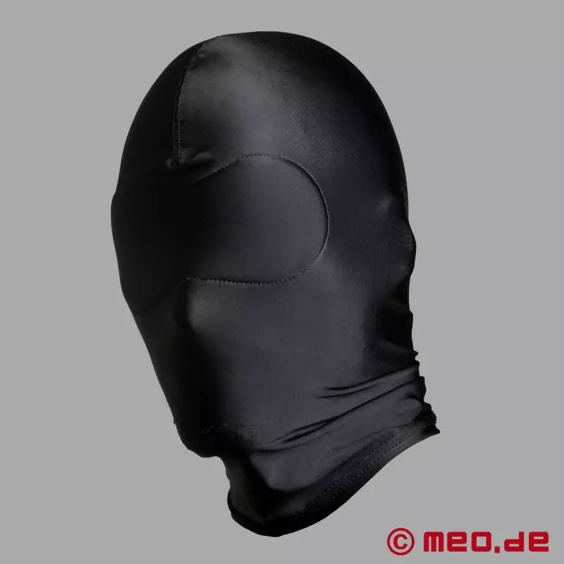Dėvint šią nepermatomą spandekso fetišo kaukę lytiniai santykiai tampa daug intensyvesni, nes "išjungus" akis suaktyvėja visi kiti pojūčiai! MEO® fetišo kaukė pagaminta iš pasitikėjimą keliančių medžiagų ir meistriškai pagaminta. Ji suteikia visiškos izoliacijos pojūtį. Kvėpuoti galima nepaisant to, kad nėra nosies ir burnos angų, nes pluoštas pralaidus orui. Taigi sekso metu galite mėgautis visiškai praradę kontrolę. Jūsų vaizduotei ribų nėra, naudokite kaukę sekso ar BDSM sesijos metu...